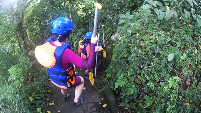 一息ついたら、200段の階段を上って、川から上がります。