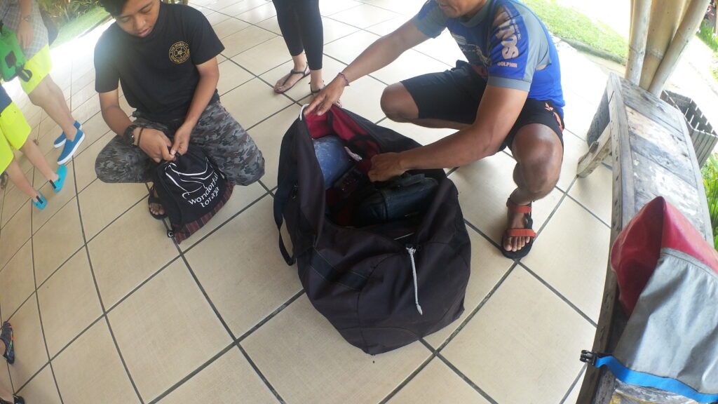 ガイドさんが大きなバックを持ってきますので、着替えなどはこの中に入れます。